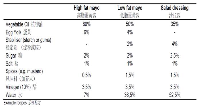 Mayonnaise&Salad dressing example formula: